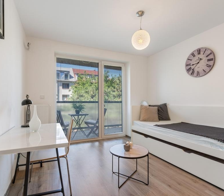 Od 1. marca 2026 je k dispozícii útulný a štýlový 1-izbový byt s rozlohou 26 m² a priestranným balkónom (6 m²), ktorý ponúka ideálne bývanie pre jednotlivca. Byt je kompletne zariadený v elegantnom bielo-šedom dizajne – stačí si priniesť osobné veci a môžete sa ihneď nasťahovať!