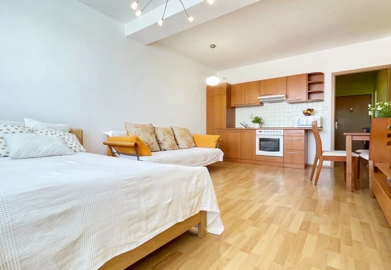Ponúkame na prenájom 1-izbový byt, ktorý spája komfort plne zariadeného domova s výbornou lokalitou.