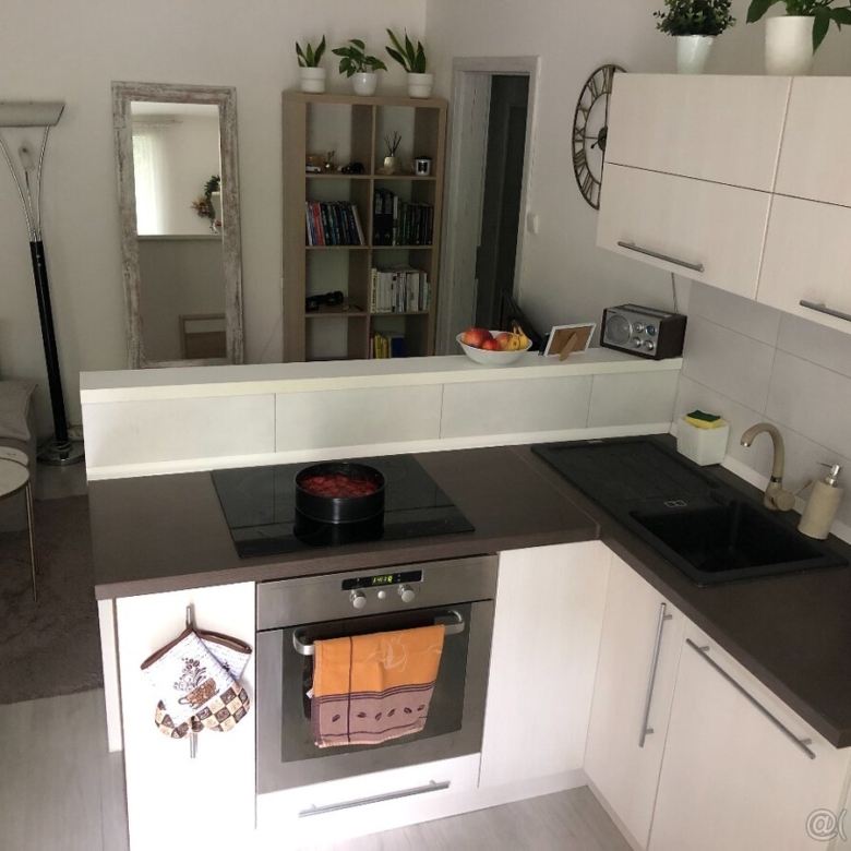 kuchynská linka so vstavanými spotrebičmi vrátane indukčnej varnej dosky a chladničky