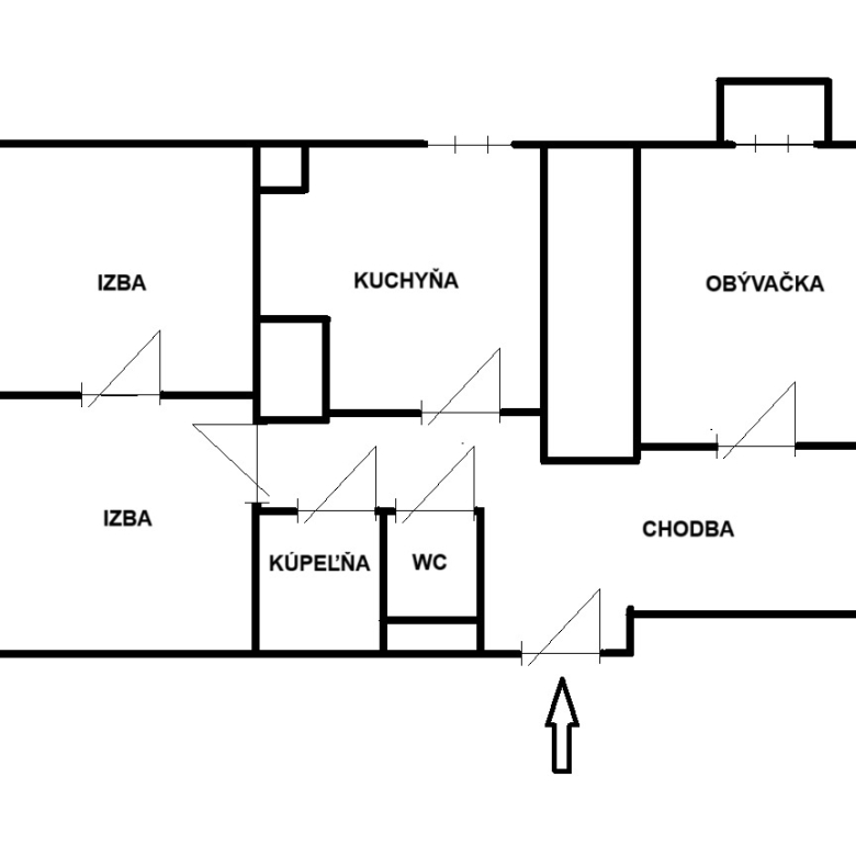 Byt je v pôvodnom stave, severovýchodná orientácia.