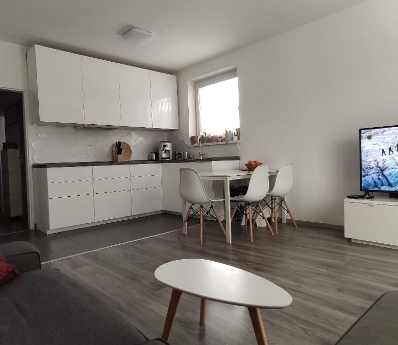 Byt prešiel rekonštrukciou v roku 2018, v byte je nová kuchynská linka so vstavanými elektrospotrebičmi (elektrická rúra, indukčná varná doska, digestor, umývačka riadku) a skriňou so zabudovanou chladničkou.