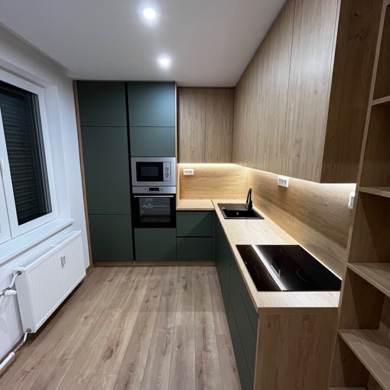 Vstavané skrine a kuchyňa po strop so zabudovanými spotrebičmi