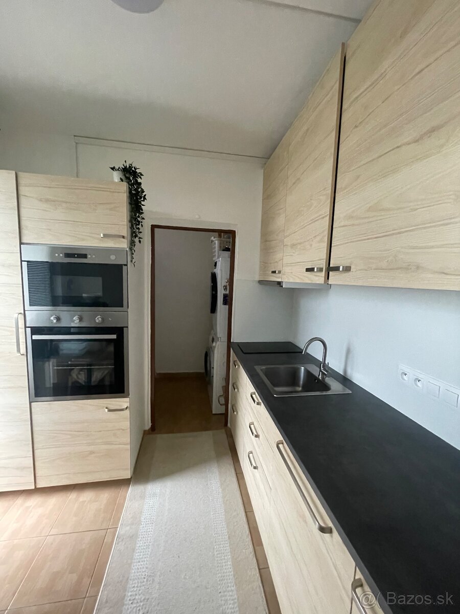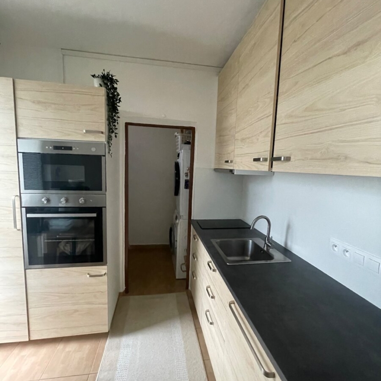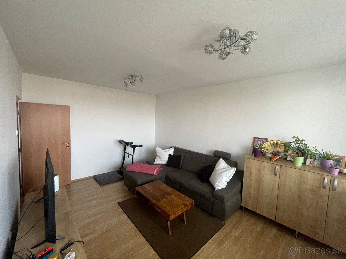 Byt sa skladá zo vstupnej chodby, kde sa nachádza samostatné WC a kúpeľňa s murovaným sprchovým kútom. Po ľavej strane je detská izba a spálňa, po pravej strane obývačka, z ktorej je vstup do kuchyne a z kuchyne do samostatnej komory. Kuchyňa a spotrebiče zn.Ikea. Z obývačky je východ na priestranný balkón. Príjemný, svetlý a priestranný byt s dobrým dispozičným riešením.