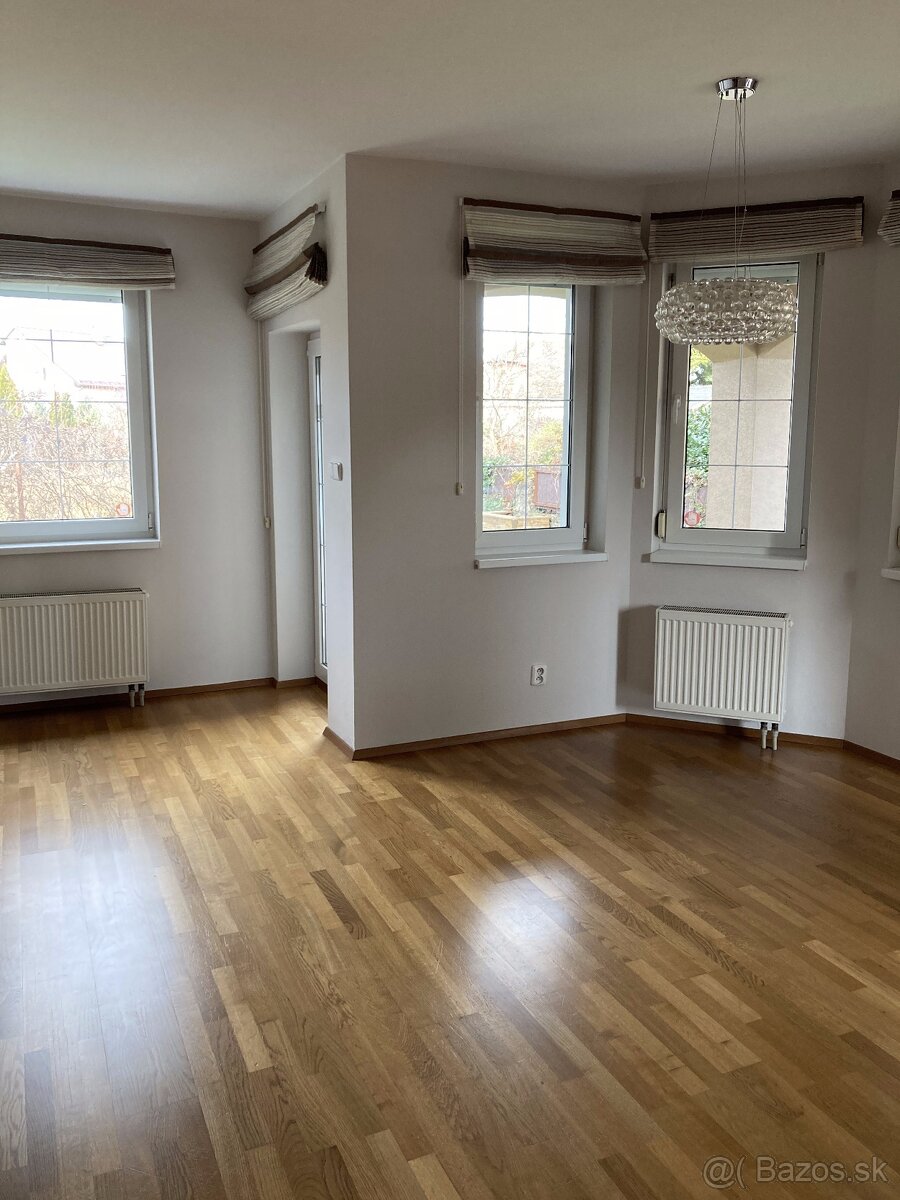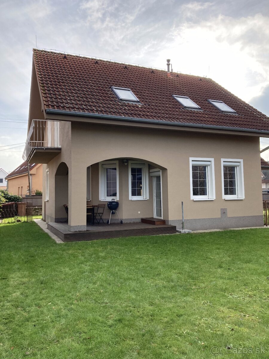 Dávame na dlhodobý prenájom náš rodinný dom s garážou a krytou terasou. Je ideálnym bývaním pre mladú rodinu, ktorá chce ostať bývať v meste, ale zároveň si chce užívať všetky výhody vidieka. Na prenájom dáva vlastnik bez provizie, realitne kancelarie prosim nevolať. Cena prenájmu je 1400 EUR/mesiac plus energie cca 150EUR/mesiac, záleží na spotrebe a počte osôb. Dom je voľný k nasťahovaniu ihneď.