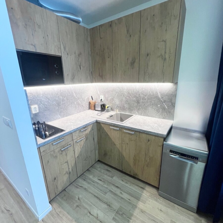 – kuchyňa: kuchynská linka DanKüchen so sklokeramickou varnou doskou, umývačkou riadu a chladničkou Bosch