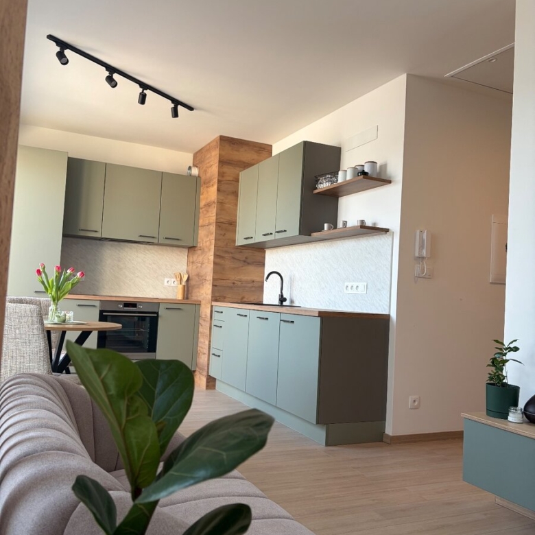 Byt sa nachádza na 2. poschodí novostavby a je kompletne zariadený moderným nábytkom na mieru.