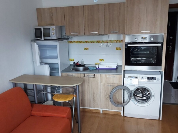 Nová kuchynská linka má zabudované spotrebiče: indukčnú varnú dosku, elektrickú rúru, umývačku riadu, mikrovlnnú rúru a samostatnú chladničku s mrazničkou.
