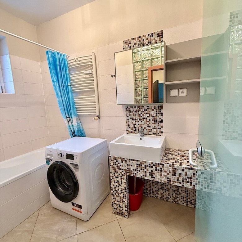Dispozícia bytu pozostáva zo vstupnej chodby, kuchyne, izby, kúpeľne, WC a samostatného balkóna pri vchodových dverách. Byt sa prenajíme kompletne zariadený vrátane práčky, umývačky riadu, TV a internetu.