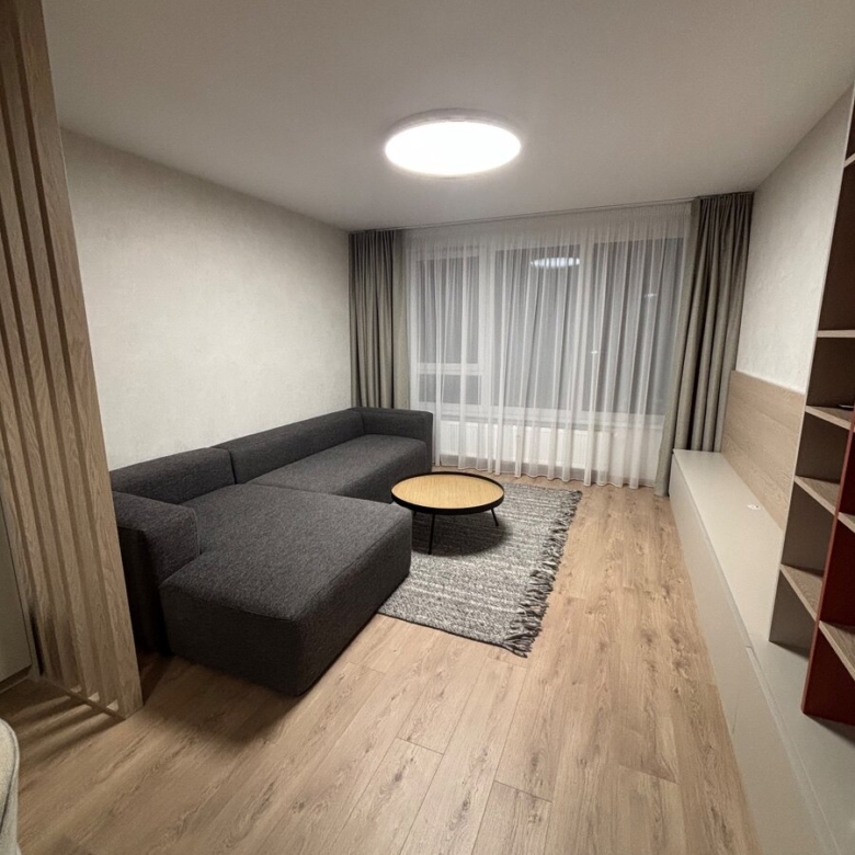 Dispozícia bytu pozostáva zo vstupnej chodby, dvoch izieb, obývačky spojenej s kuchyňou, kúpeľnou, samostatným wc a predzáhradkou, ktorá je smerovaná do vnutrobloku.