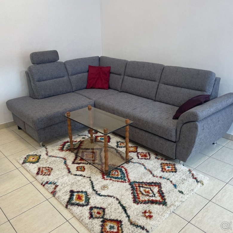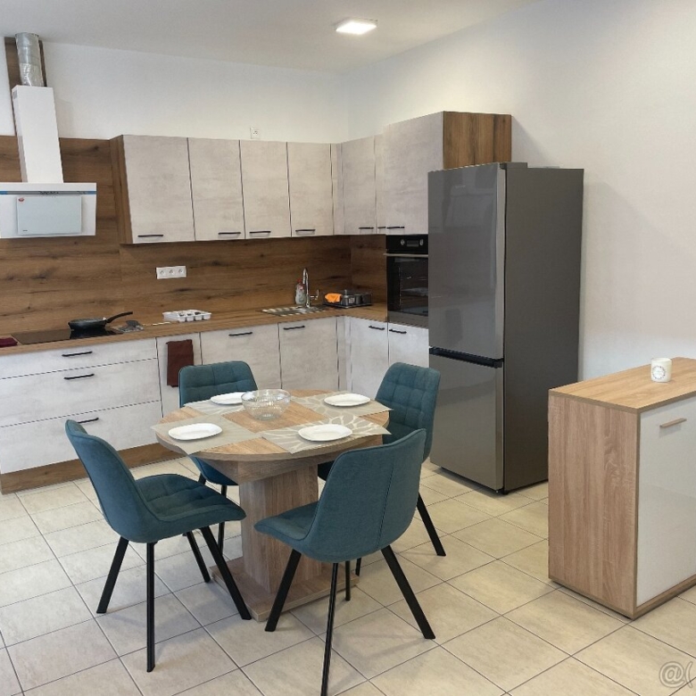 Kuchynská linka je nová so spotrebičmi: chladnička s mrazničkou, elektrická rúra, varná doska, digestor a v kúpeľni je práčka. Je kompletne novo zariadený a vybavený. Moderná kuchyňa spojená s obývacou izbou s rohovou sedacou súpravou.