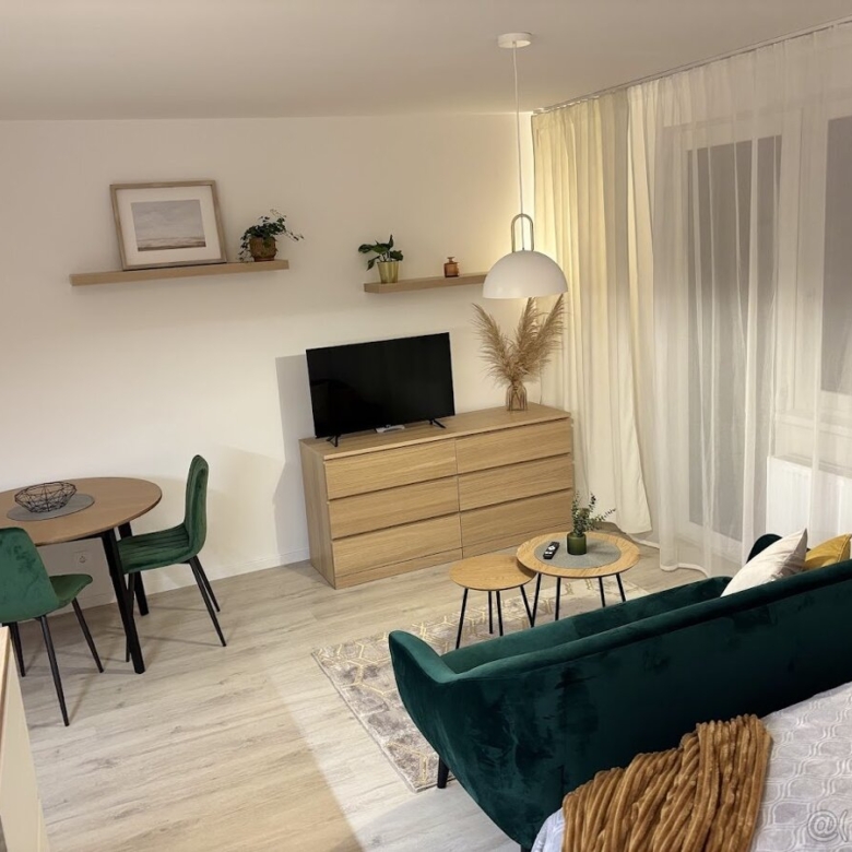 – kompletne zariadený (nábytok, TV, práčka, kuchynské vybavenie, vysávač, kuchynské vybavenie, sušiak na prádlo, …)
