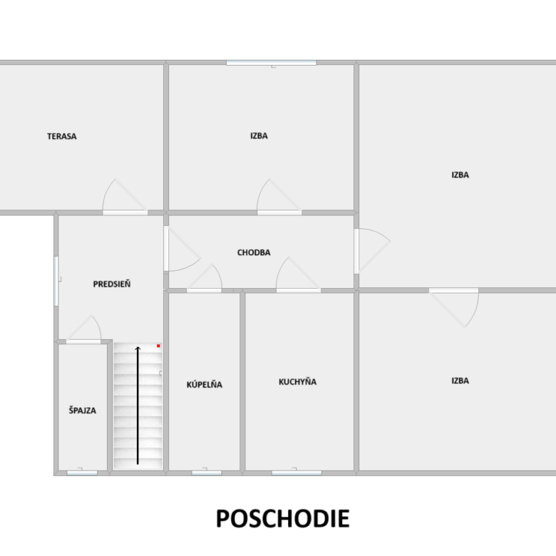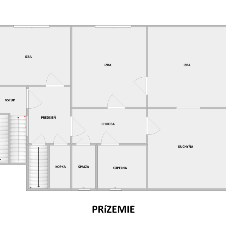 ✅Prízemie – Vstupná predsieň, Chodba, 3x Izba, Kuchyňa, Kúpeľňa + WC, Špajza, Kopka