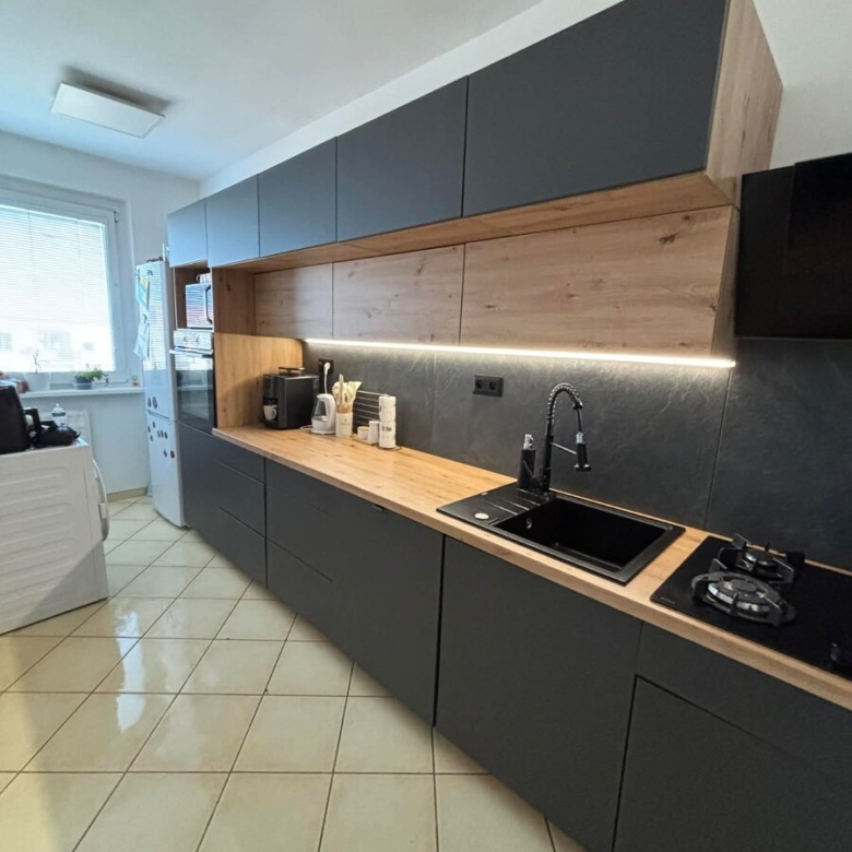 Byt je čiastočne zrekonštruovaný, vstavané skrine ktoré ponúkajú množstvo úložné priestoru, taktiež nová kuchynská linka so vstavanými spotrebičmi.