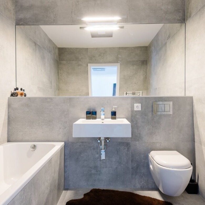 Dispozícia bytu pozostáva zo vstupnej haly s hosťovskou kúpeľňou, sprchovým kútom a toaletou. Hala sa nachádza nad úrovňou obývacej a nočnej časti, pričom je s obývacou časťou spojená interiérovým schodiskom. Priestranná obývacia časť je prepojená s kuchynským kútom a moderným veľkým kuchynským ostrovom so zabudovanými spotrebičmi. Nočná časť bytu pozostáva z chodby, ktorá spája 2 priestranné samostatné spálne a kúpeľňu s vaňou a toaletou.