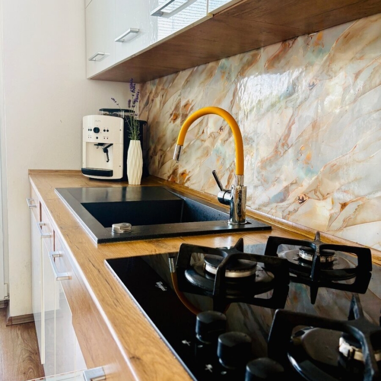 • Kuchynská linka so zabudovanými spotrebičmi (elektrická rúra, umývačka riadu).