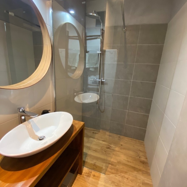 Byt sa nachádza na 6. poschodí a je plne zariadený a kompletne zrekonštruovaný (bezpečnostné vchodové dvere, murované jadro, plastové okná s novými žalúziami, drevenými parketami v obývačke, kuchyni a spálni a dlažbou na chodbe, komore, kúpeľni a záchode). Skladá sa z predsiene a priestrannej chodby s roldorom spájajúcej všetky izby, samostatnej komory oddelenej od chodby roldorovými zrkadlovými posuvnými dverami, priestrannej obývačky, kuchyne, spálne a detskej izby. Taktiež má 2 veľké 3,5 m balkóny; z obývačky a z detskej izby, ktorý je zasklený so 4 posuvnými oknami.