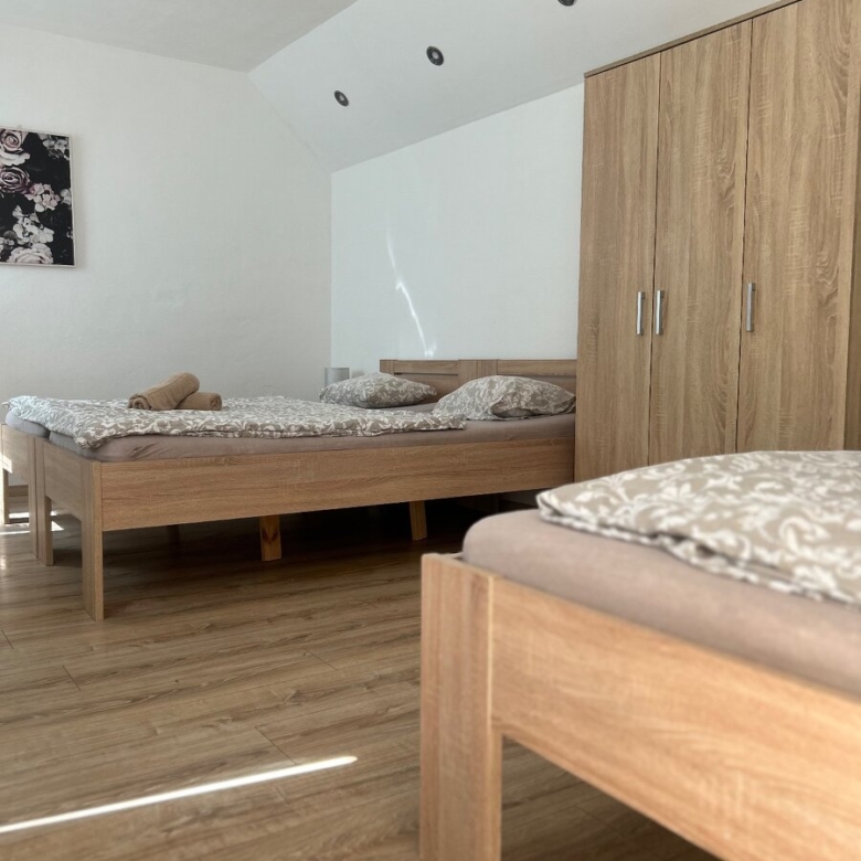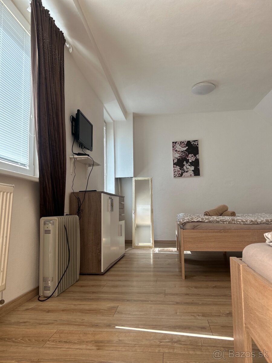 Zariadený: elektrická rúra, práčka, chladnička, manželská posteľ, plynový sporák