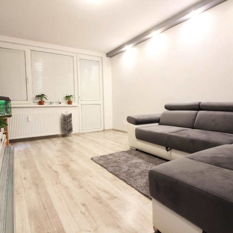 Byt sa nachádza na 7. poschodí z 12. v panelovom dome s 2 výťahmi a disponuje praktickou dispozíciou: vstupná hala, veľký šatník, samostatné WC, kúpeľňa, samostatná izba, obývacia izba, kuchyňa a má až 3 balkóny, ktoré poskytujú dostatok svetla a priestoru.