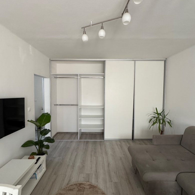 Byt prešiel kompletnou rekonštrukciou, je plne zariadený vrátane nových spotrebičov – stačí sa nasťahovať, nadštandardný úložný priestor – rolldoory v obývačke aj na chodbe
