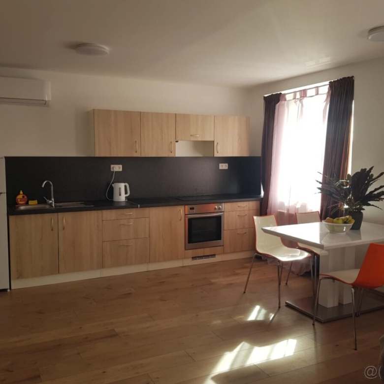 Byt je vybavený klimatizáciu, TV, kuchynská linka, elektrická dvoj-platnička, rúra na pečenie, chladnička, pračka.