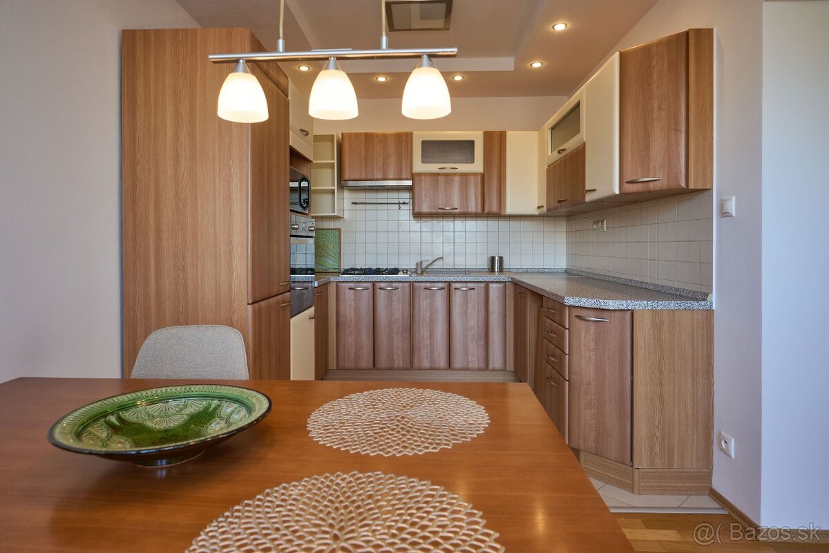 Ponúkam na prenájom kompletne zariadený 3-izbový byt o rozlohe 84 m2 + 3 m2 balkón so vstupom z kuchyne + 3 m2 balkón so vstupom z obývacej miestnosti. Byt sa nachádza na treťom poschodí v malom tehlovom bytovom dome v obľúbenej lokalite v tesnej blízkosti Severnej Veže mestských hradieb.