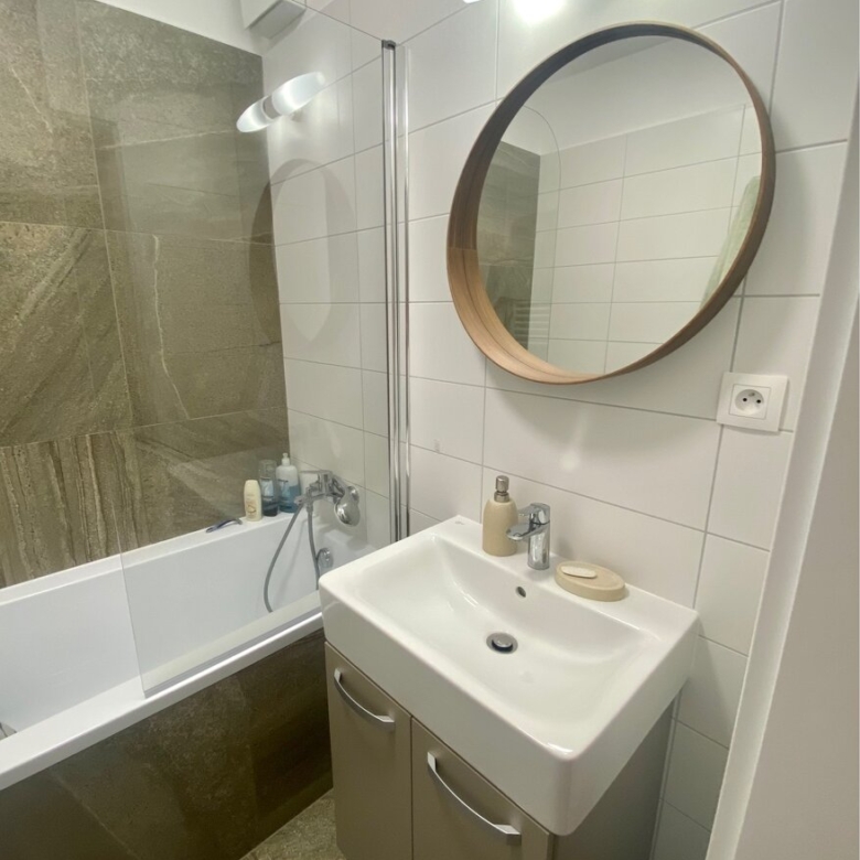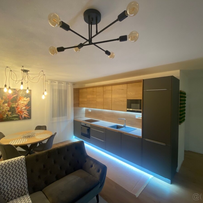 – moderne riešená dispozícia (otvorená moderná kuchyňa, prepojená s obývacou izbou) – spálňa, chodba, samostatné WC, kúpeľňa, homeOffice pracovňa – alebo detská izba, balkón s výhľadom do tichého dvora, nad bytom už nie je žiaden byt, len veľka terasa