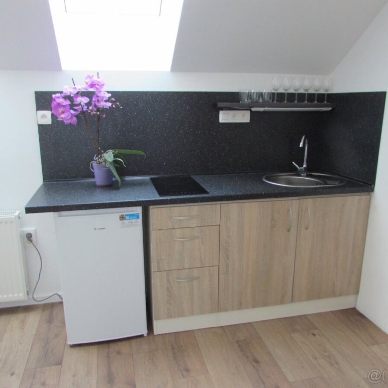 Gazonka je vybavený klimatizáciu, kuchynská linka, elektrická dvoj-platnička, chladnička, pračka.