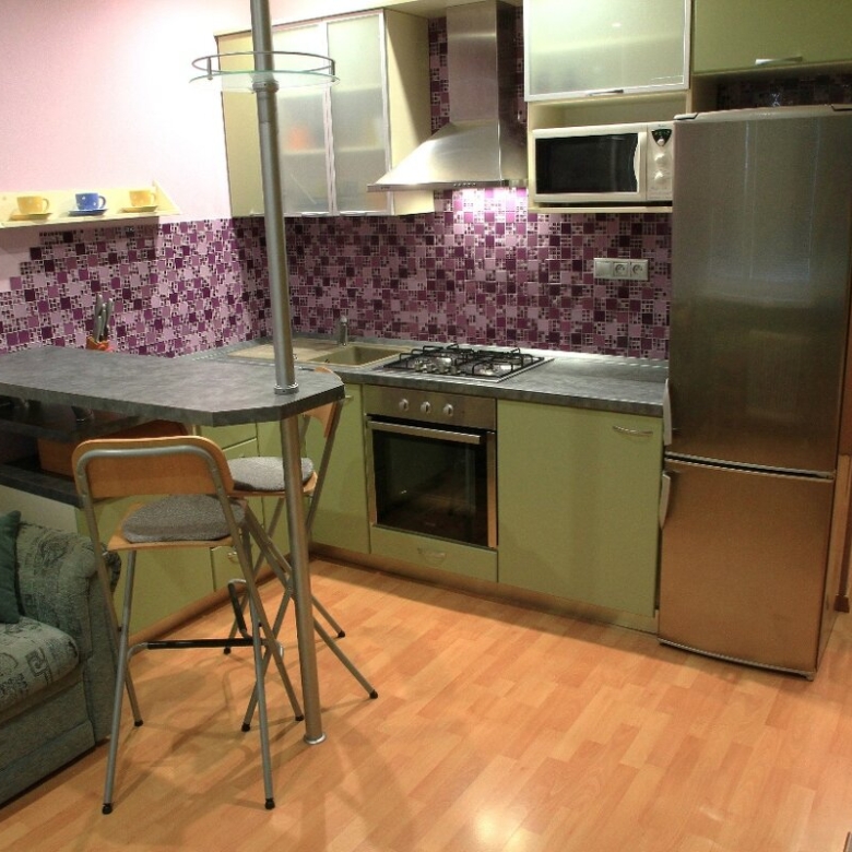 – kuchyňa (kuchynská linka, barový stôl a stoličky, chladnička s mrazničkou, plynová varná doska, elektrická rúra, mikrovlnka, rýchlovarná kanvica, riady, zabudovaná práčka)