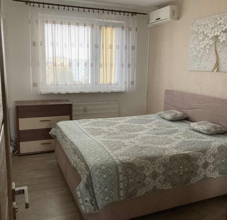 Byt je kompletne zariadený nábytkom a vybavený elektrospotrebičmi – klimatizácia v každej izbe, 2 x TV, chladnička, mraznička, práčka, sušička, mikrovlnná rúra, plynový sporák s rúrou na pečenie. V byte sú bezpečnostné dvere, plastové okná so žalúziami, plávajúce podlahy a dlažba. Byt sa nachádza na 7. poschodí z 8, v zateplenom bytovom dome s novým výťahom a je vhodný pre jedného nájomcu alebo pár, ktorí hľadajú komfortné bývanie v tichej a atraktívnej lokalite. K bytu prislúcha aj priestranná loggia s výhľadom na celé mesto Nitra.