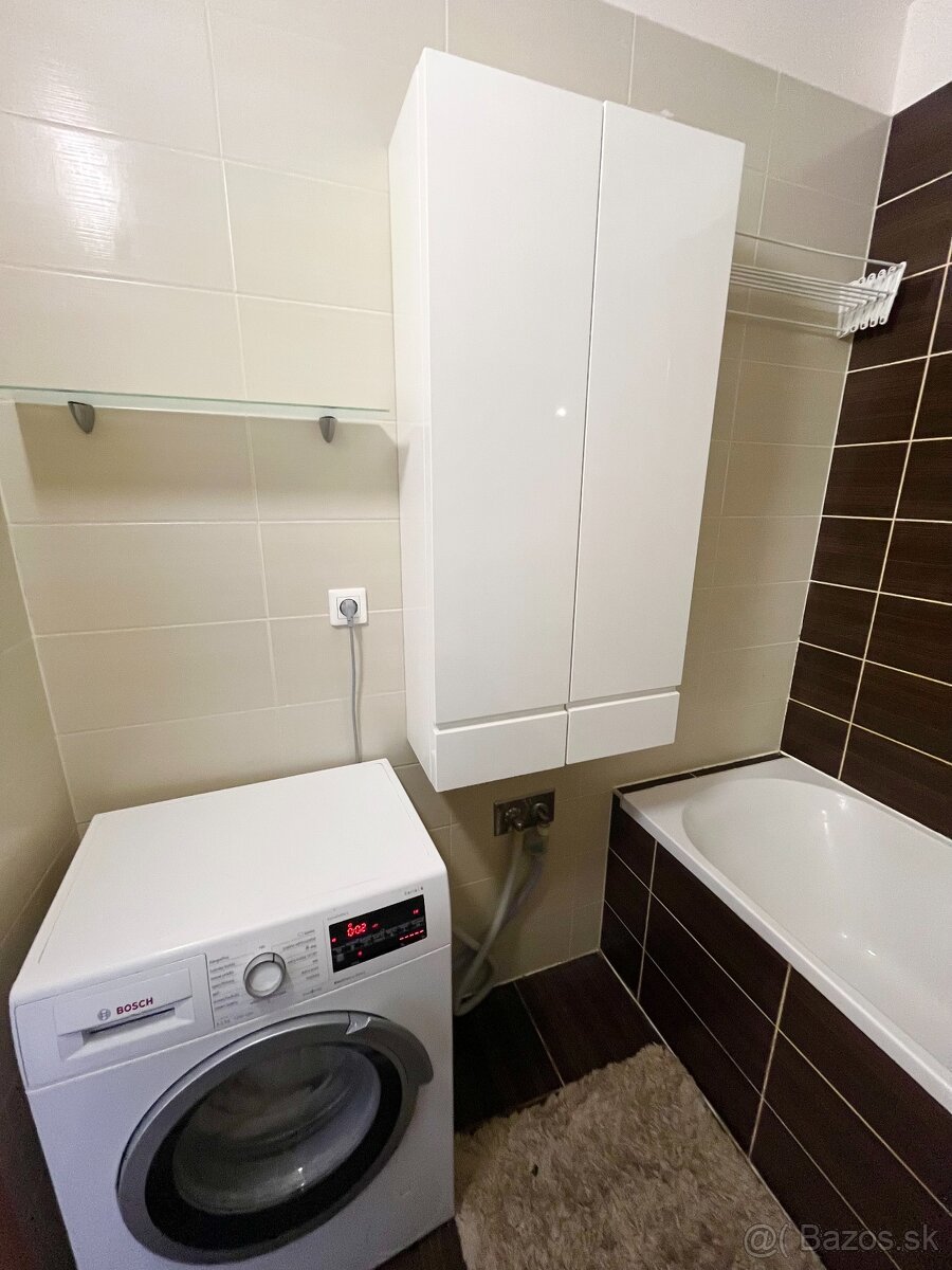 Súčasťou bytu je loggia a balkón – ideálny priestor na oddych s výhľadom na tiché okolie. K bytu patrí aj pivnica, ktorá ponúka ďalší úložný priestor. Sociálne zariadenie je riešené prakticky: kúpeľňa s vaňou, samostatná toaleta, práčka i sušička samozrejmosťou.